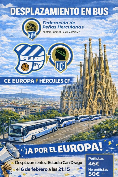 La Federación de Peñas Herculanas organiza un desplazamiento para acompañar al Hércules CF en el partido de la jornada 19, el 11 de enero de 2026, en el Estadio Enrique Roca de Murcia . Este viaje está abierto para peñistas como para aficionados no peñistas.